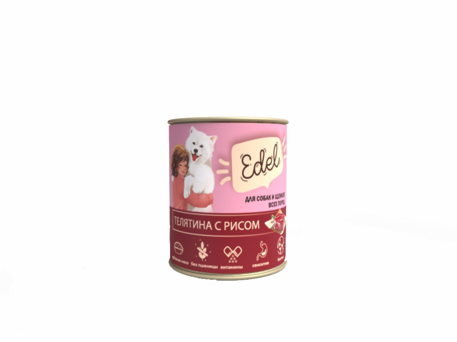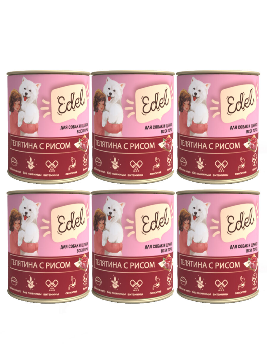 Влажный корм Edel для собак и щенков любых пород с телятиной и рисом (6шт х 850гр)