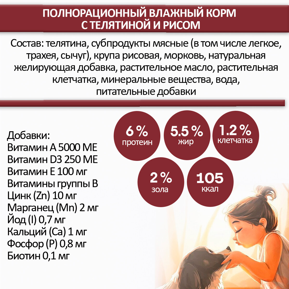| Возраст животного | взрослые (1-6 лет) / пожилые (7+) / щенки (до 1 года) |