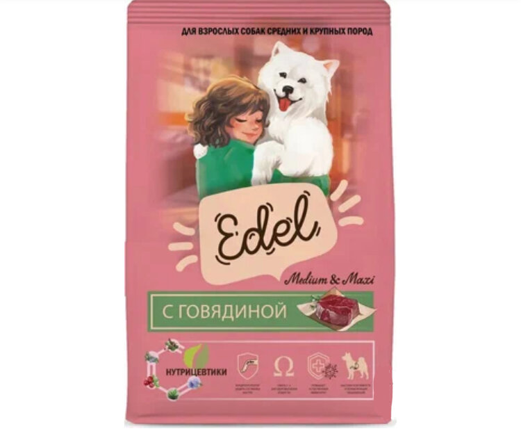Корм сухой для собак средних и крупных пород Edel с говядиной, 12 кг Эдель