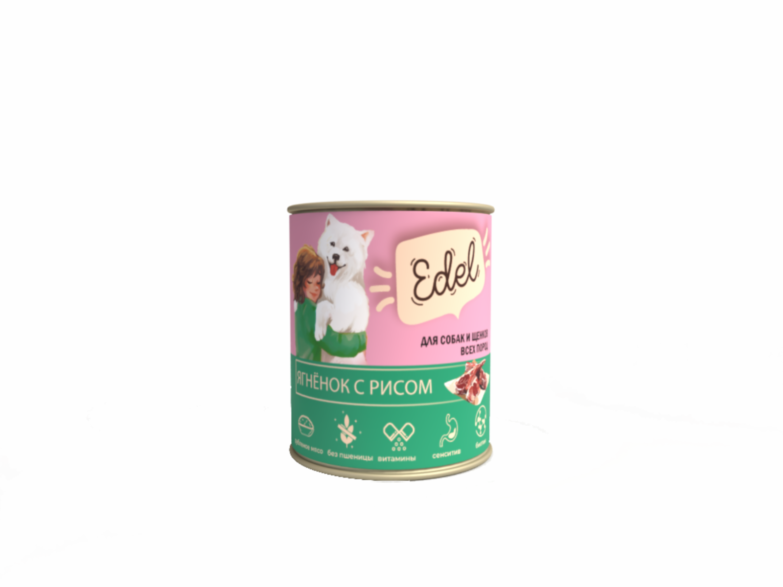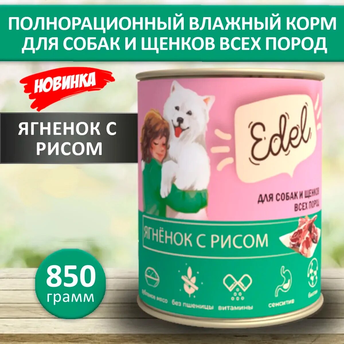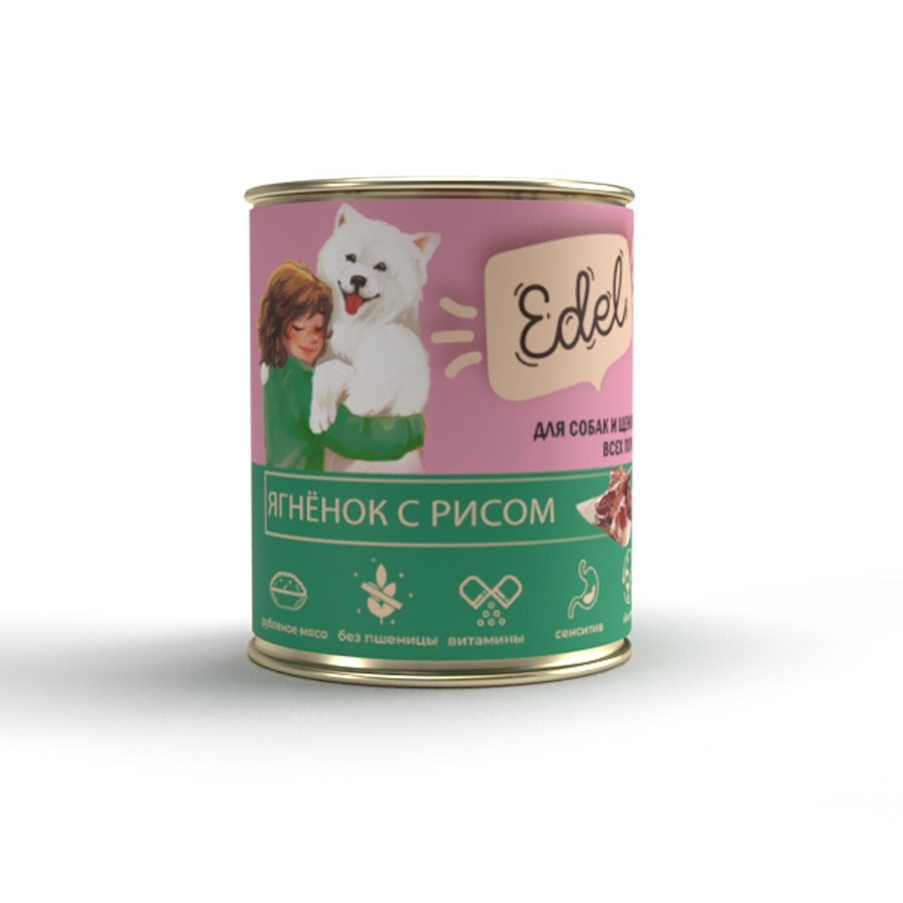 Влажный корм Edel для собак и щенков любых пород с ягненком и рисом (6шт х 850гр)