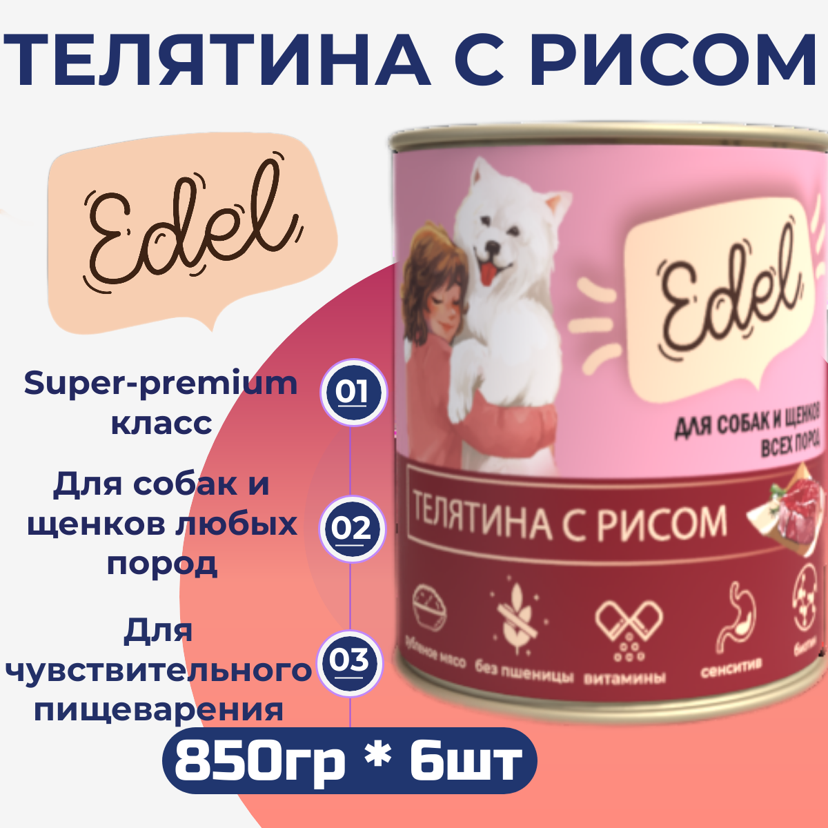Купить Влажный корм Edel для собак и щенков любых пород с телятиной и рисом (6шт х 850гр)