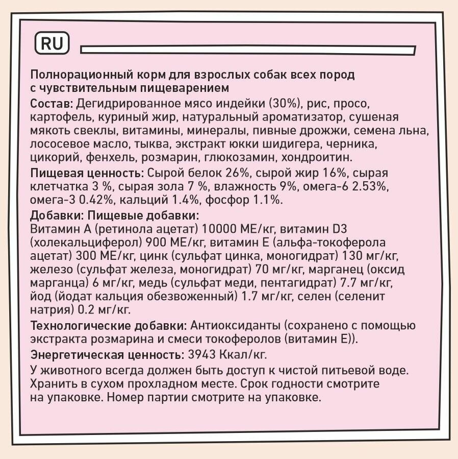 ZILLII Adult Dog Sensitive Digestion Сухой корм для взрослых собак с чувств. пищев. Индейка 3кг
