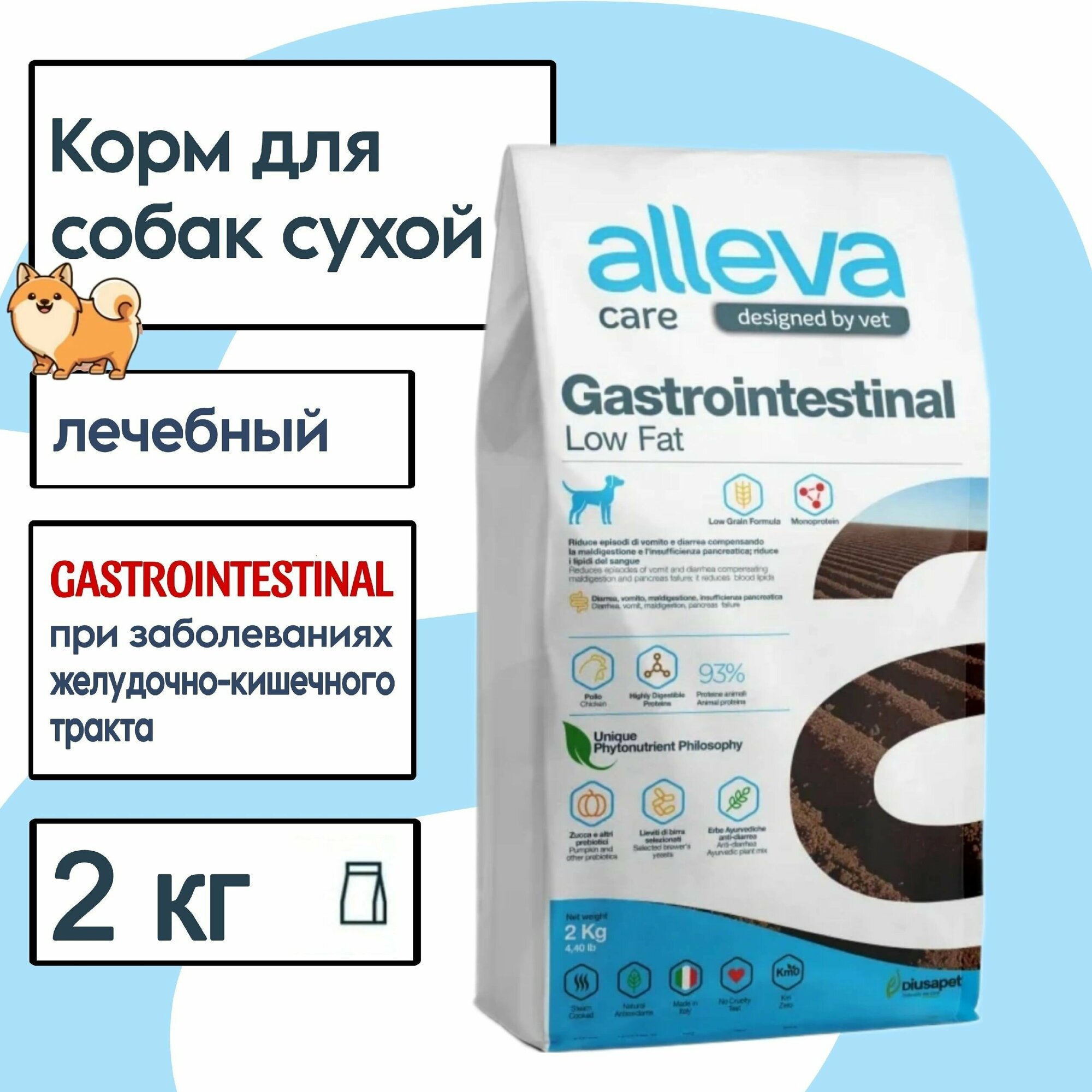 ALLEVA Корм для собак CARE GASTROINTESTINAL с низким содержанием жиров 2 кг. интересное: