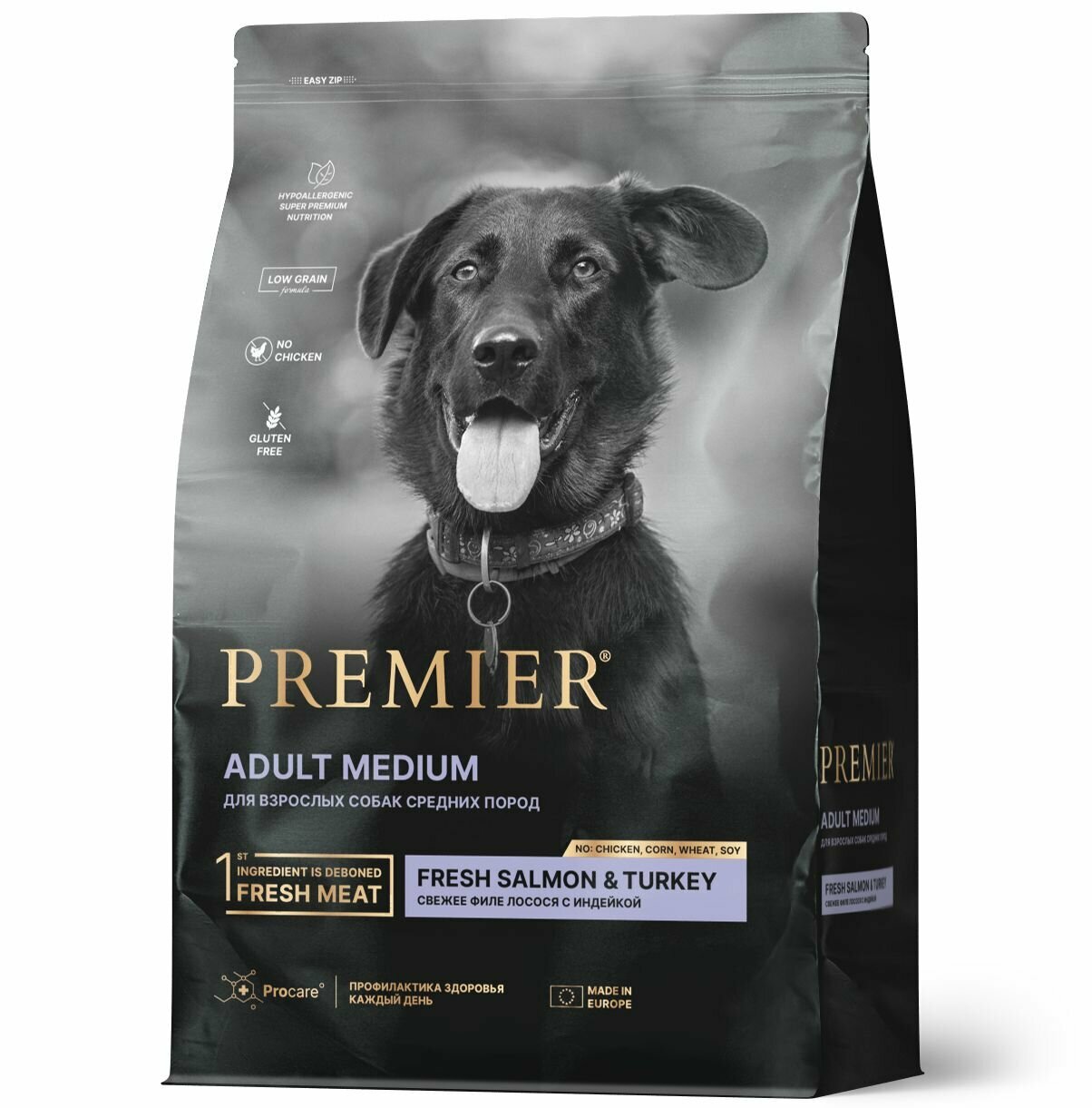 Сухой корм Premier Dog Salmon&Turkey ADULT Medium из свежего филе лосося с индейкой для собак средних пород 3 кг