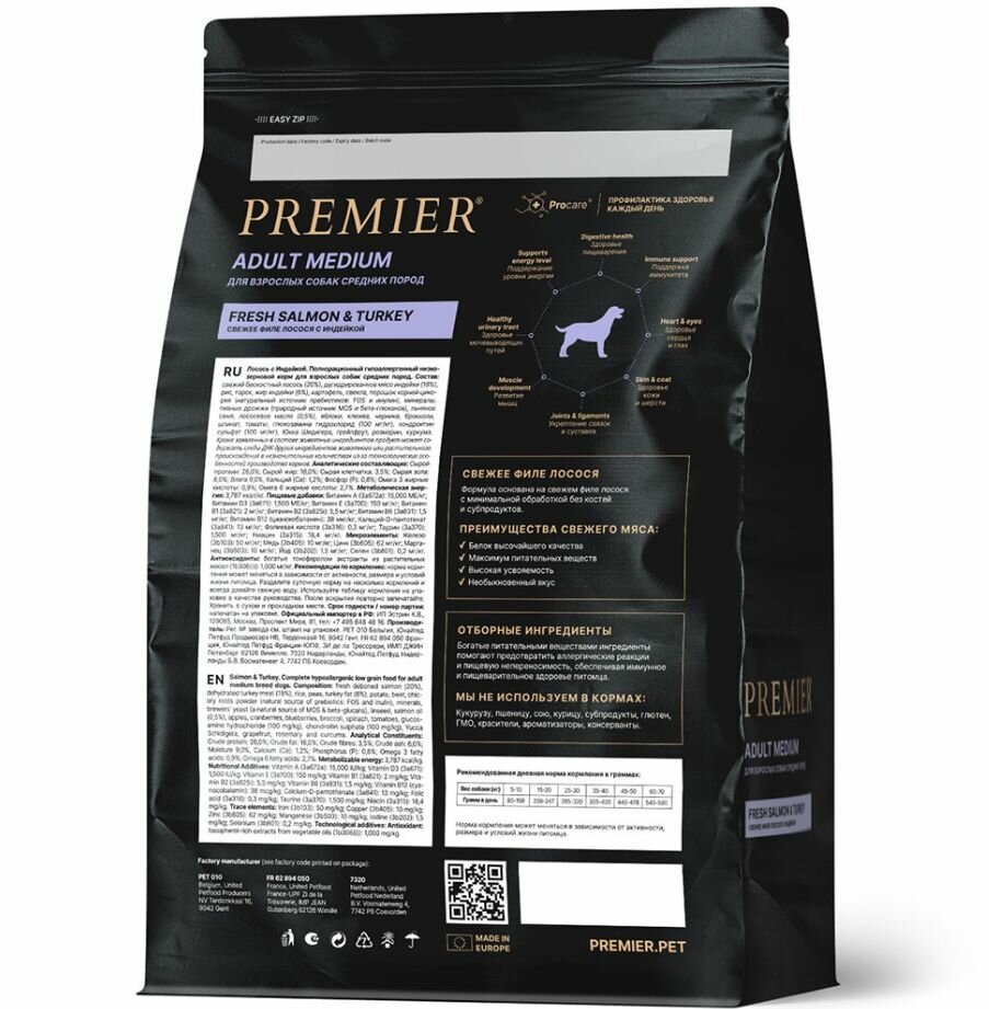 Сухой корм Premier Dog Salmon &Turkey ADULT Medium (Свежее филе лосося с индейкой для собак средних пород) 3 кг