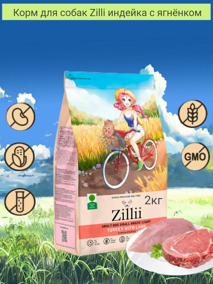 Купить Zilli Dog Small Breed Сухой корм для собак мелких пород с избыточным весом Индейка с Ягнёнком 2кг