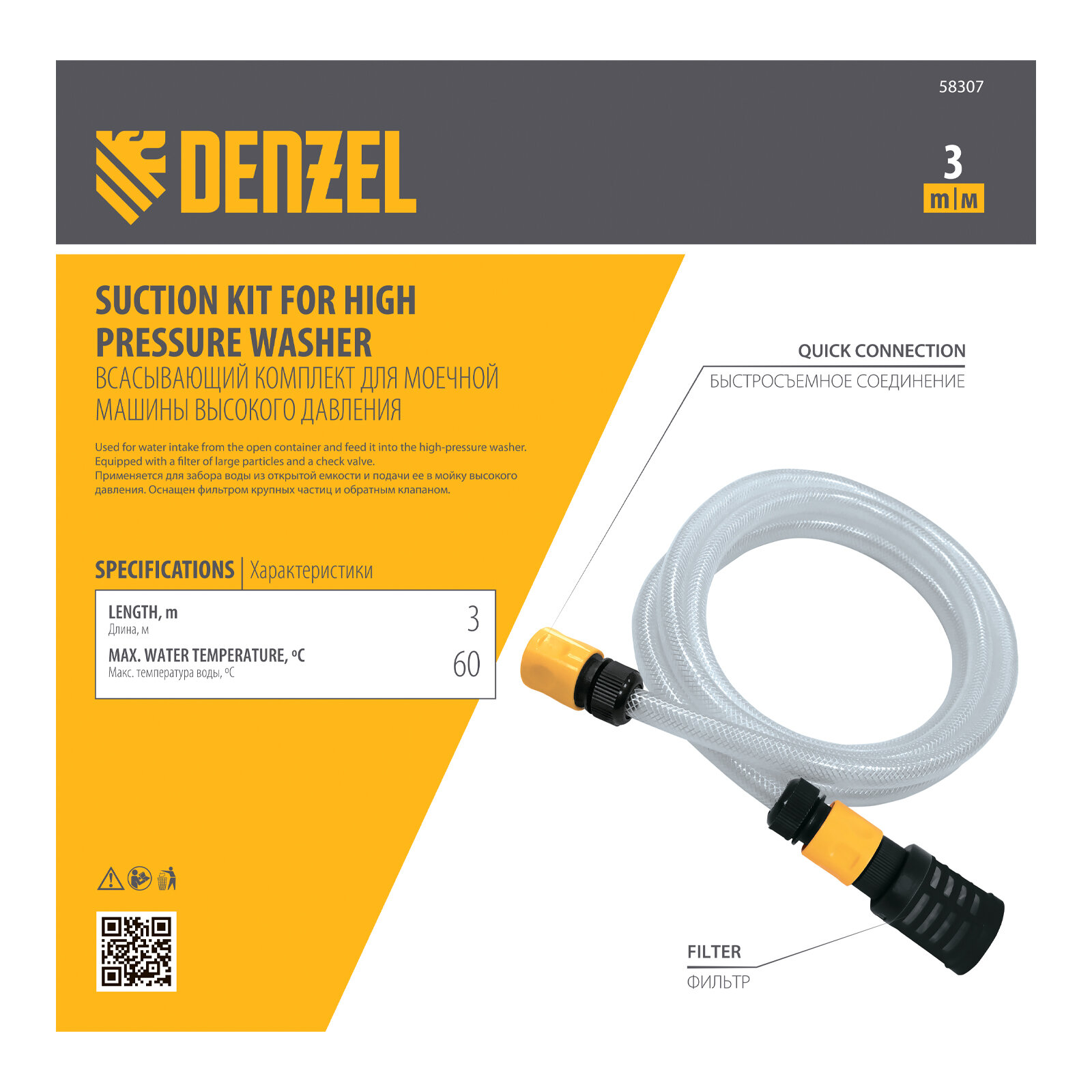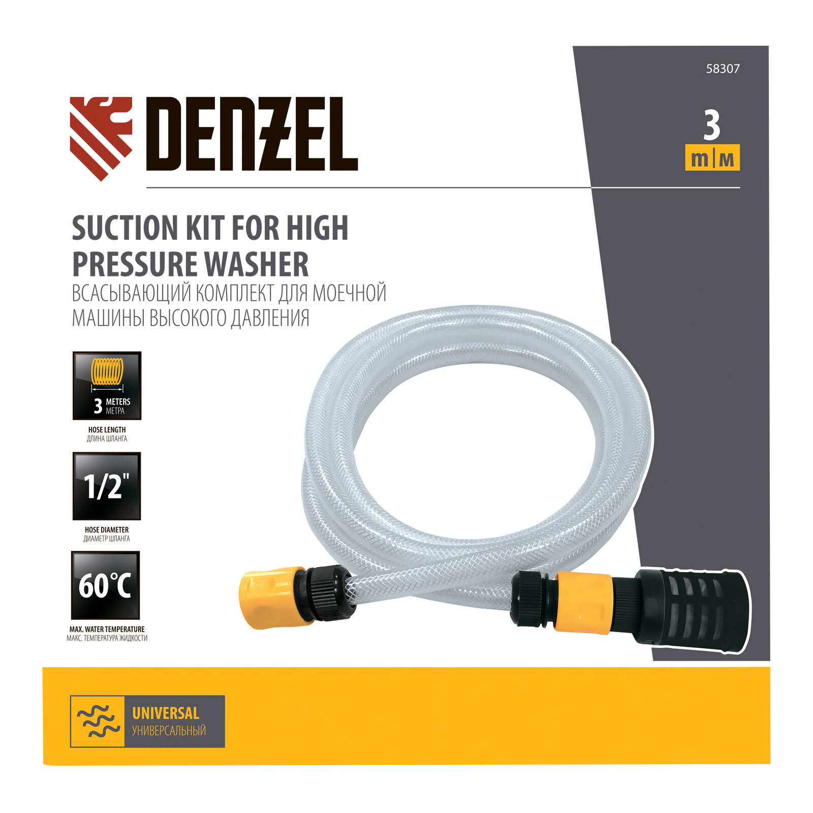 Всасывающий комплект для моечных машин высокого давления Denzel 3 м, диаметр шланга 1/2" 58307 интересное: