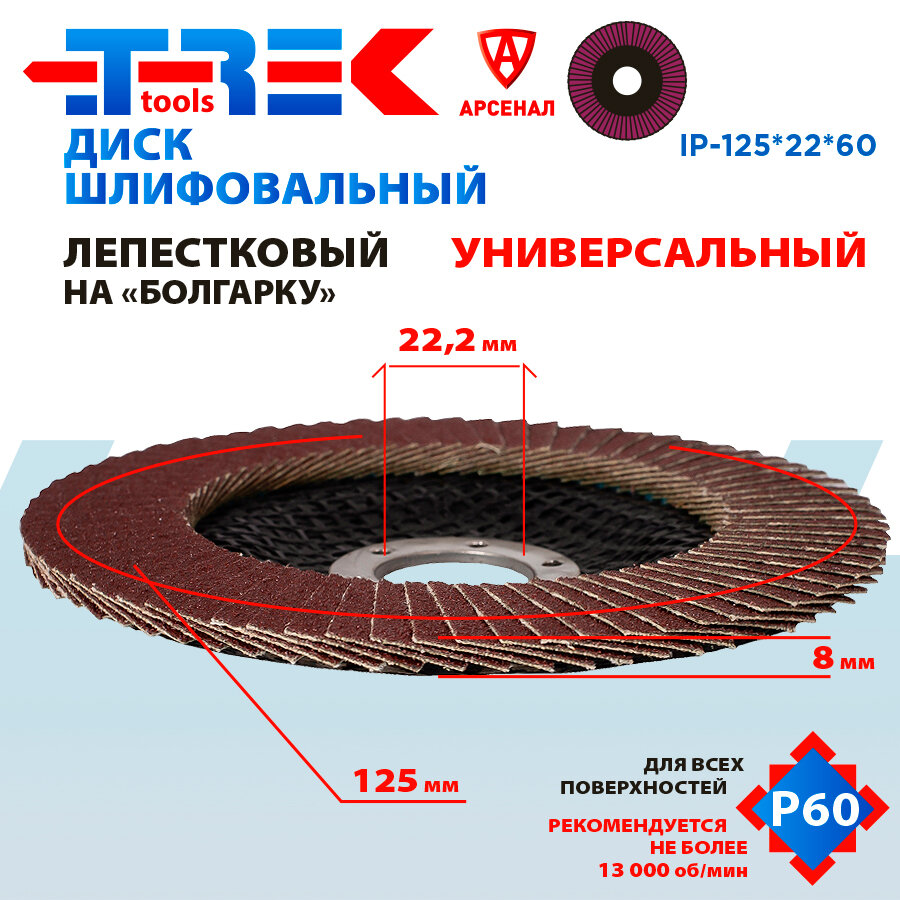 Диск шлифовальный лепестковый К60 на болгарку 125х22мм, IP-125*22*60 интересное: