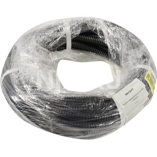 Труба гофрированная Rexant из ПНД с зондом, черная, диам. 16 мм (бухта 10 м)