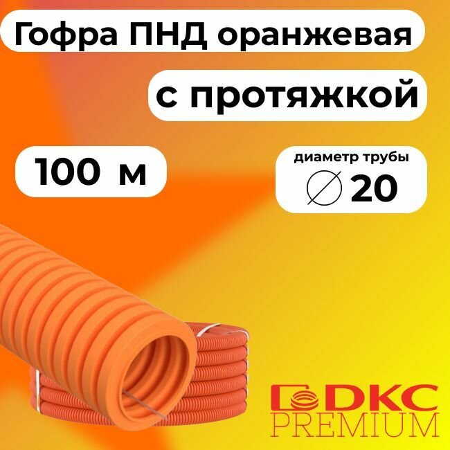 Труба гофрированная ПНД с протяжкой 20 мм 100м гибкая гофра для кабеля легкая ДКС оранжевая 71920 DKC