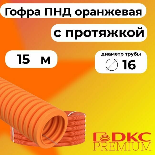 Гофра для кабеля ПНД D 16 мм с протяжкой оранжевая 5 м.DKC Premium.