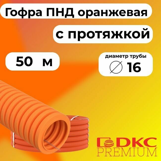 СохранитьГофра для кабеля ПНД D 16 мм с протяжкой оранжевая 50 м.DKC Premium. интересное: