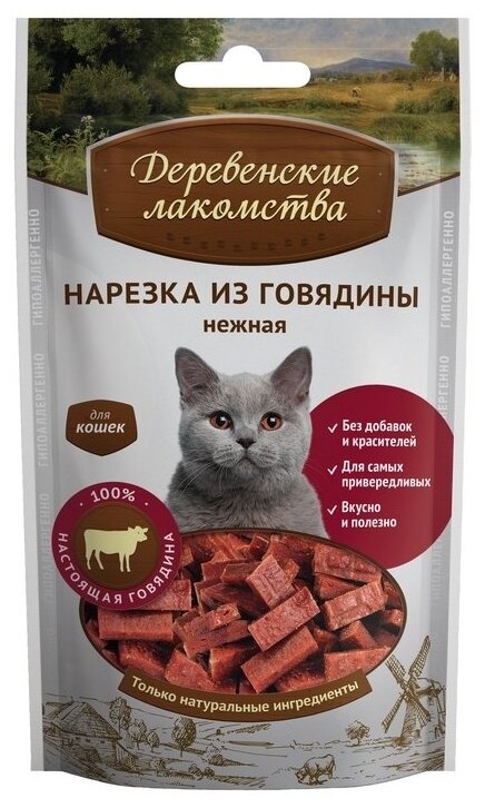Деревенские лакомства "Нарезка из говядины нежная" для кошек пакет, 45 гр