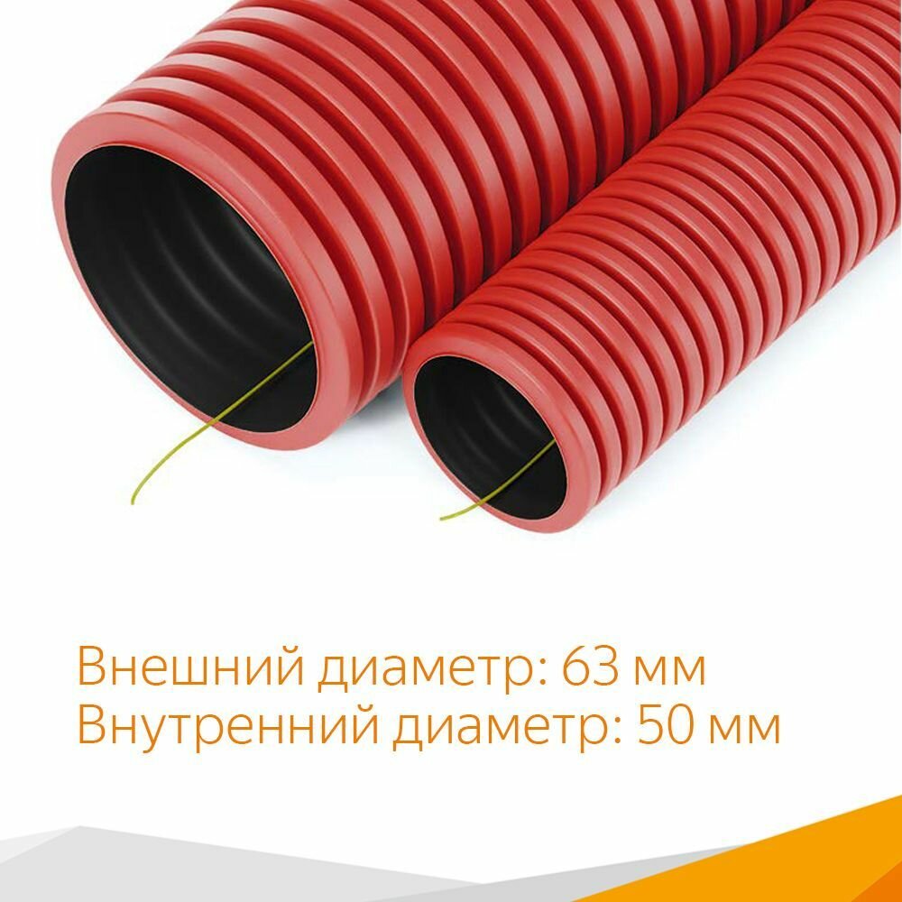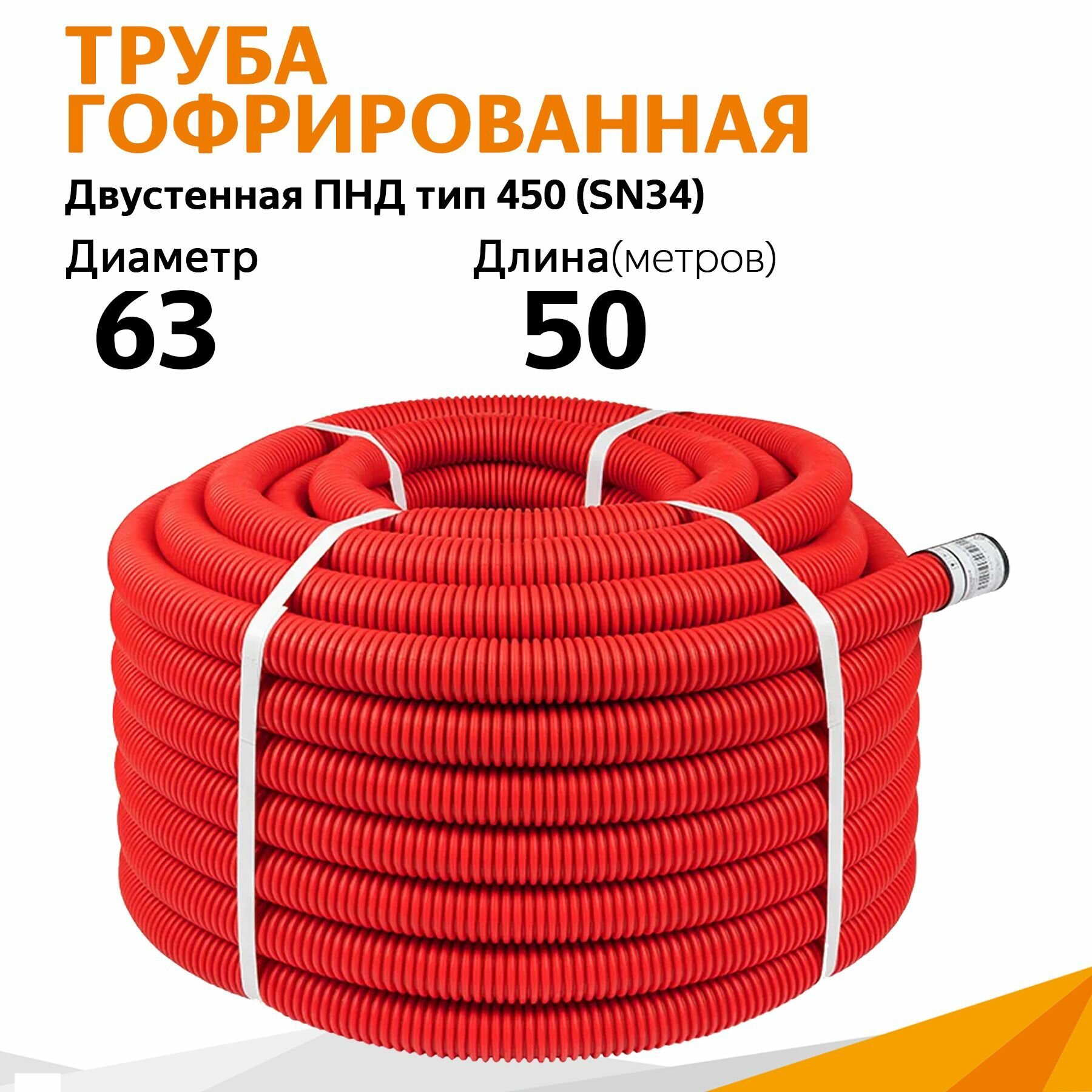 Купить Труба гофрированная двустенная ПНД гибкая тип 450 (SN18) с/з красная д63 (50м/уп) Промрукав