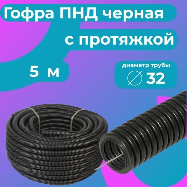 СохранитьГофра для кабеля ПНД D 32 мм с протяжкой черная 5 м. "Plastic Standart". интересное: