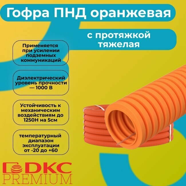 СохранитьГофра для кабеля ПНД с протяжкой тяжелая оранжевая DKC Premium D32 - 20м. интересное: