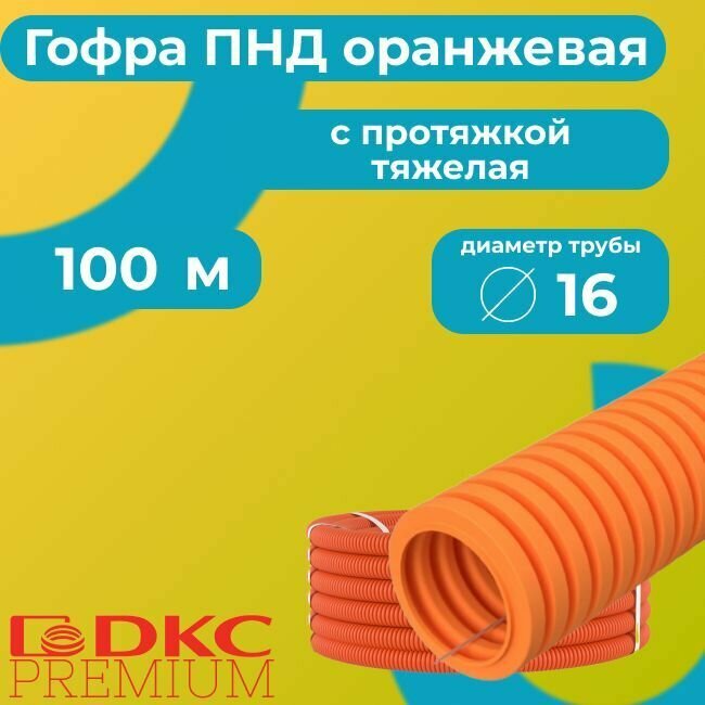 Гофра для кабеля ПНД с протяжкой тяжелая оранжевая DKC Premium D16 - 15м.