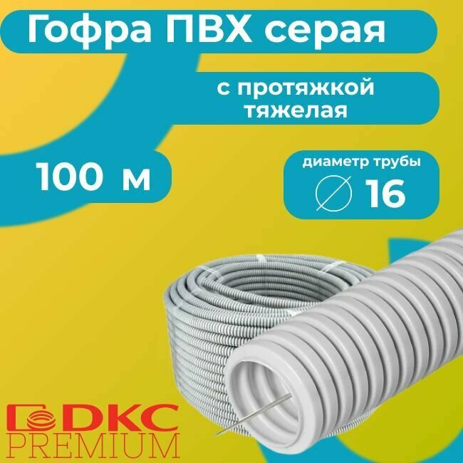 СохранитьГофра для кабеля ПВХ с протяжкой тяжелая серая DKC Premium D16 - 100м. интересное: