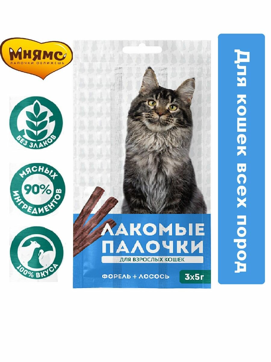 Лакомство для кошек Мнямс Лакомые палочки Лосось, форель, 5г х 3шт. в уп. 15 г