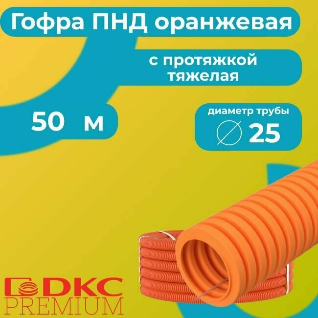Гофра для кабеля ПНД с протяжкой тяжелая оранжевая DKC Premium D25 - 15м.
