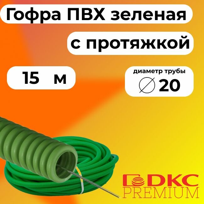 Купить Гофра для кабеля ПВХ D 20 мм с протяжкой зеленая 15 м.DKC Premium.
