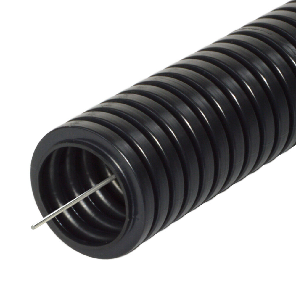 Труба гофрированная ПА негорючая (НГ) стойкая к ультрафиолету (УФ) черная с/з d25 мм (50м/уп) Промрукав