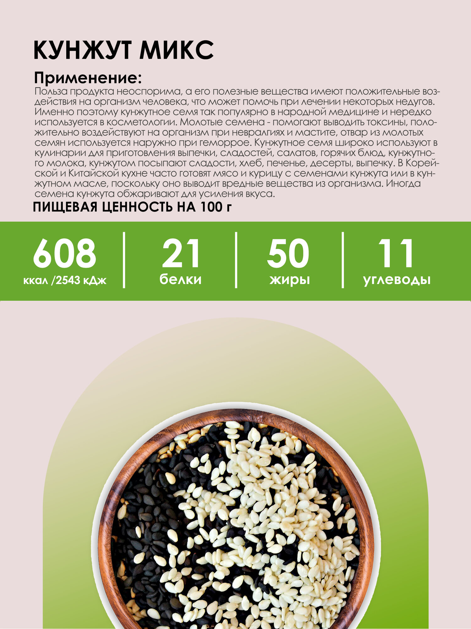 | Состав | кунжут белый 50%, кунжут черный 50% |