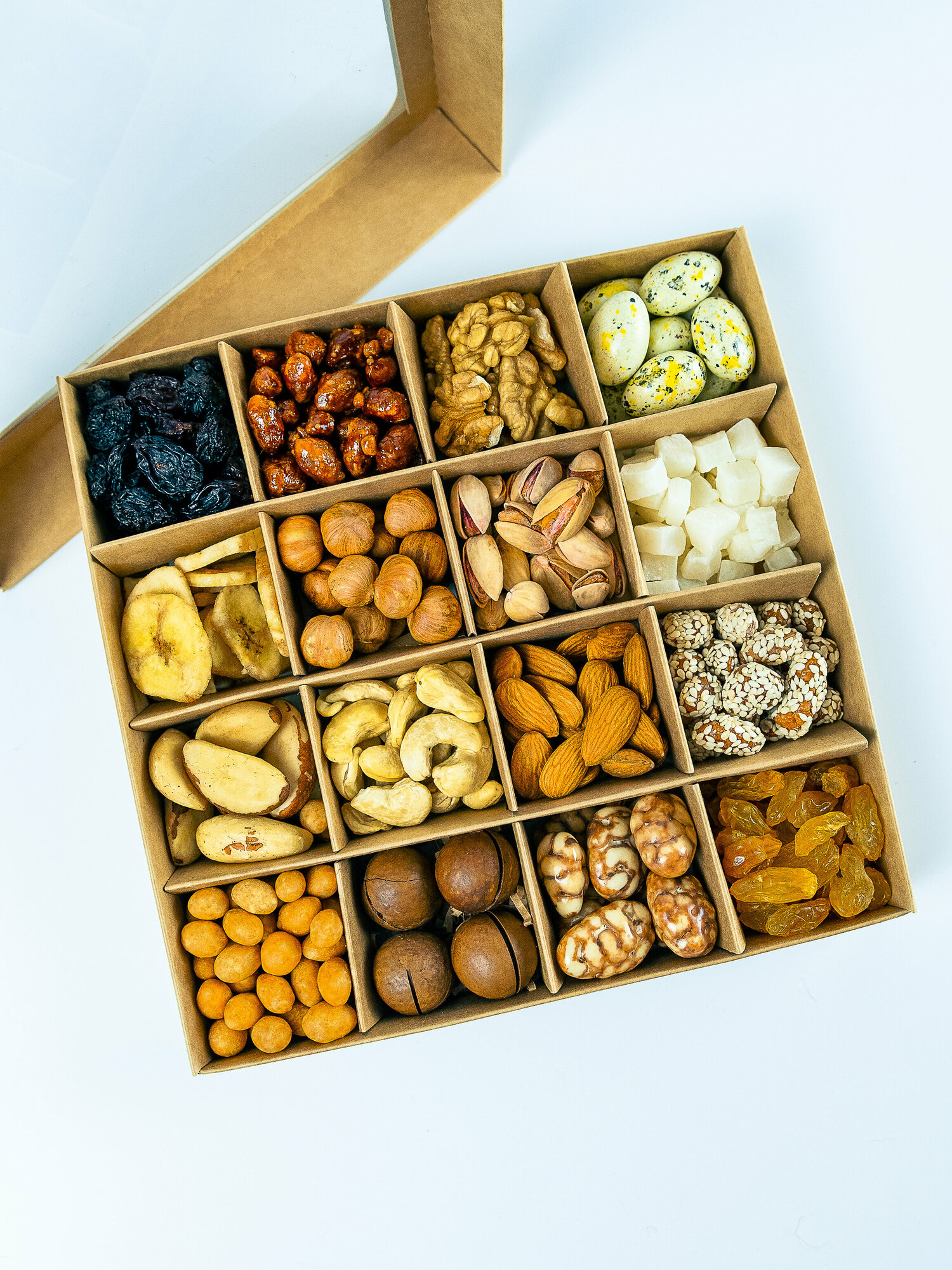 Подарочный набор орехов, сухофруктов и шоколадов интересное: