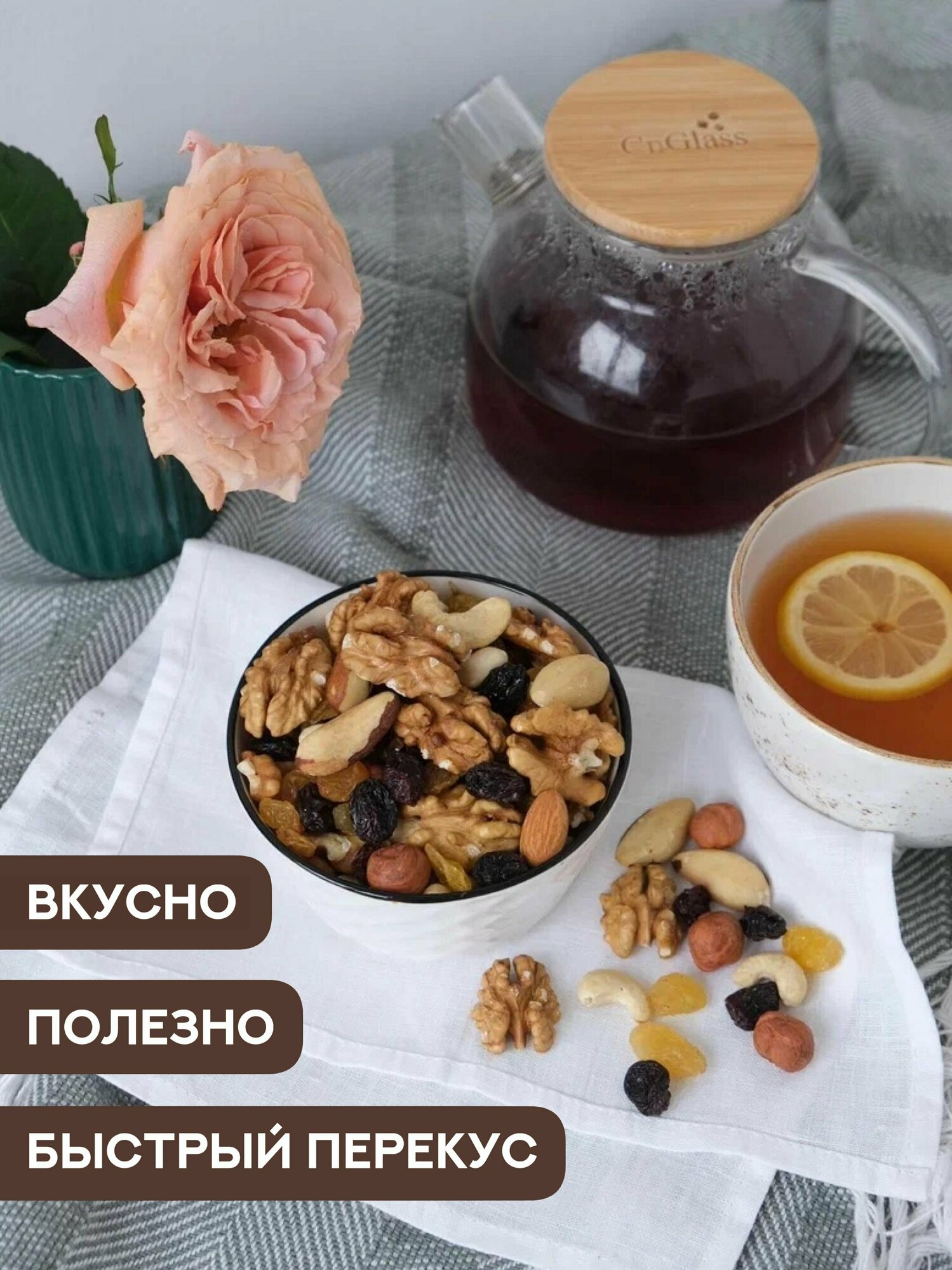| Вид орехов | арахис / бразильский орех / грецкий орех / кешью / миндаль / фундук |