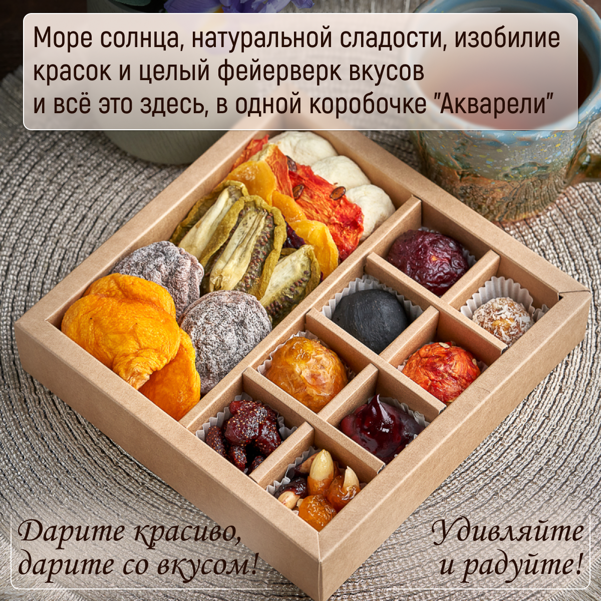 Подарочный набор "Акварели" ассорти сухофруктов, орехов и цукатов 460 гр Mealshop интересное: