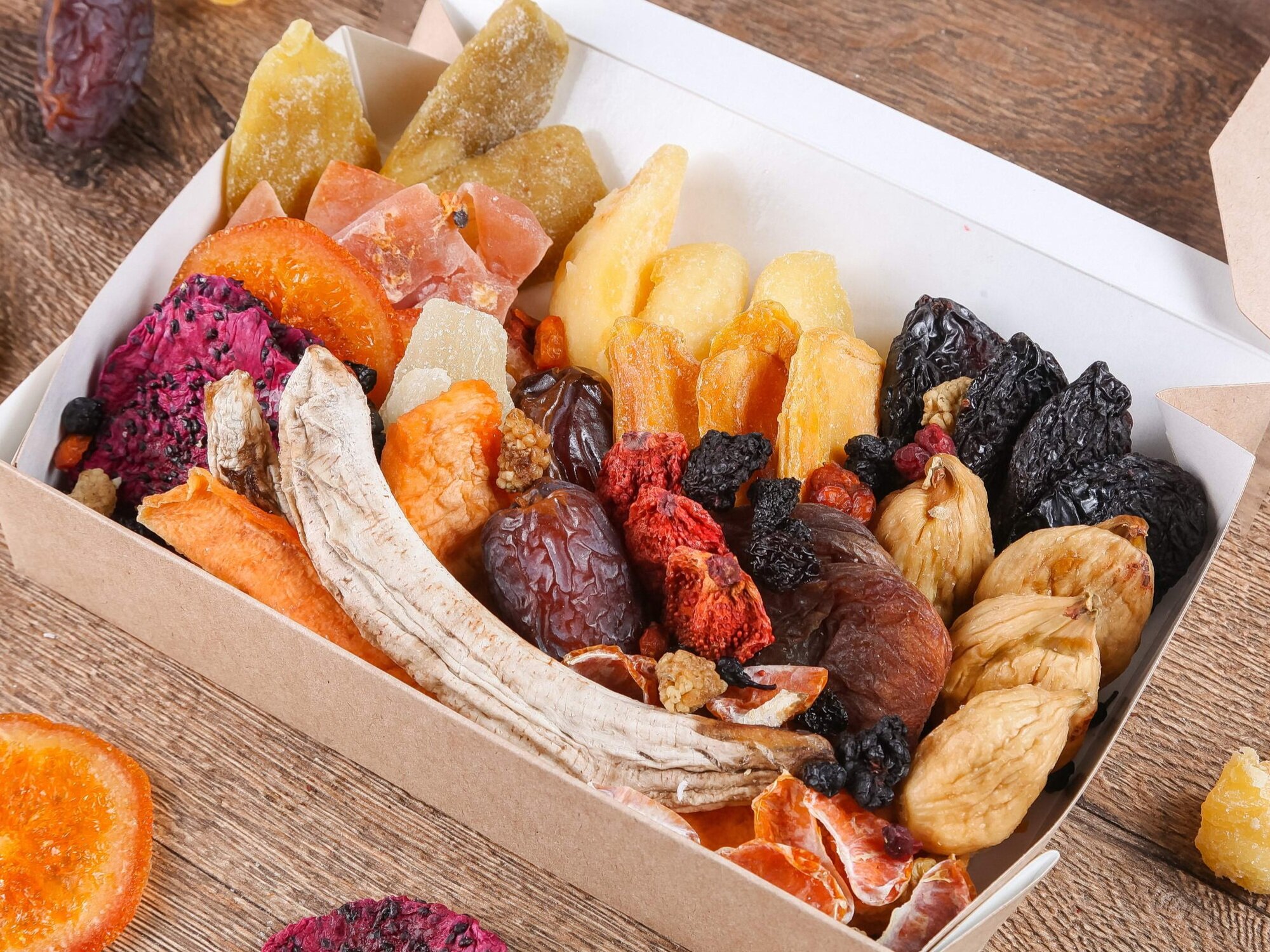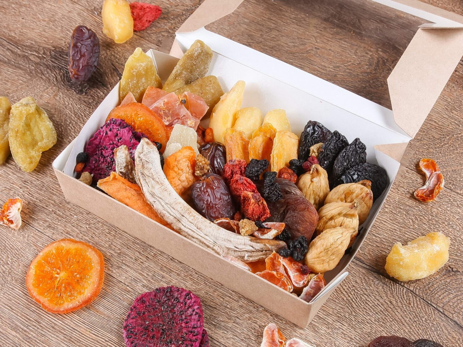 | Вид сухофруктов | апельсин / банан / брусника / вишня / гуава / джекфрут / дыня / ежевика / имбирь / инжир / курага / мандарин / маракуйя / облепиха / питахайя / слива / тутовник / финики / черника |