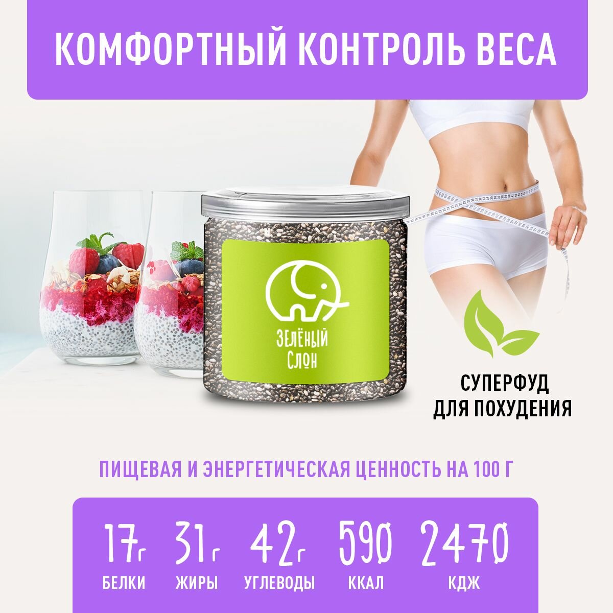 Семена чиа для похудения Зеленый Слон 350 гр интересное: