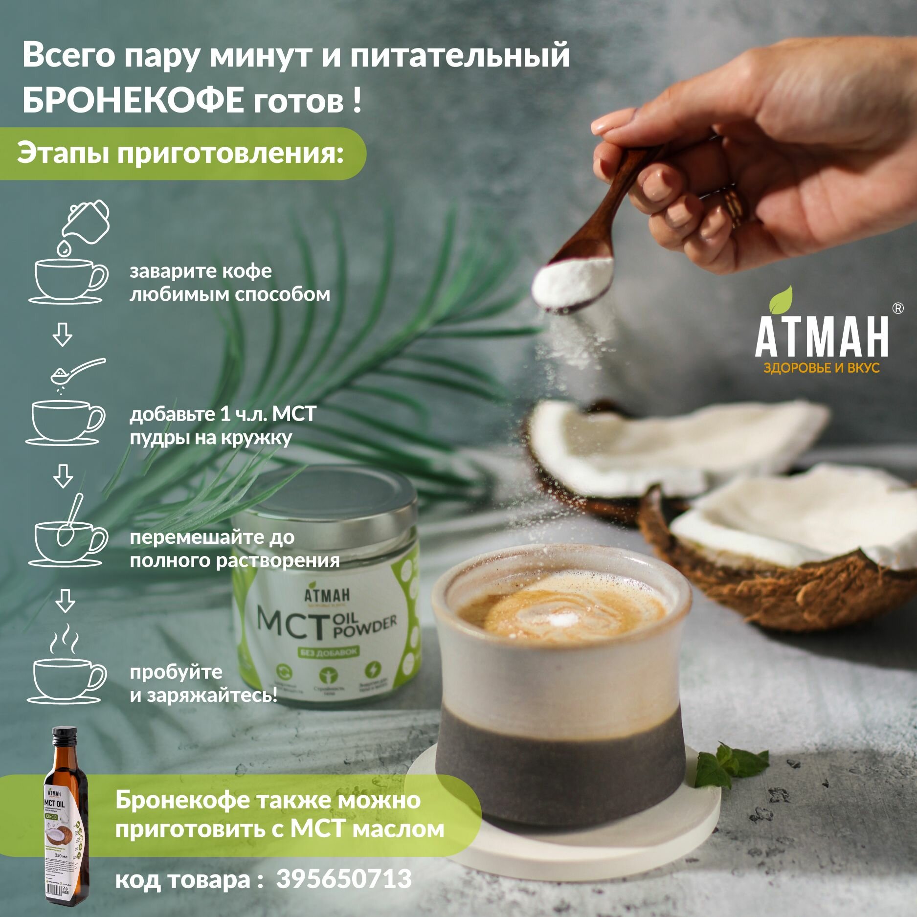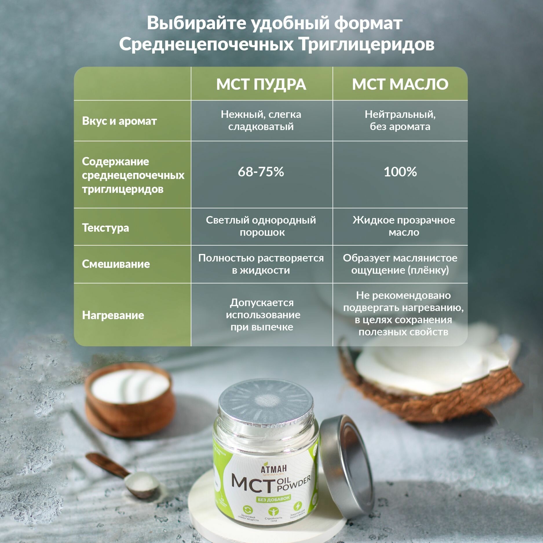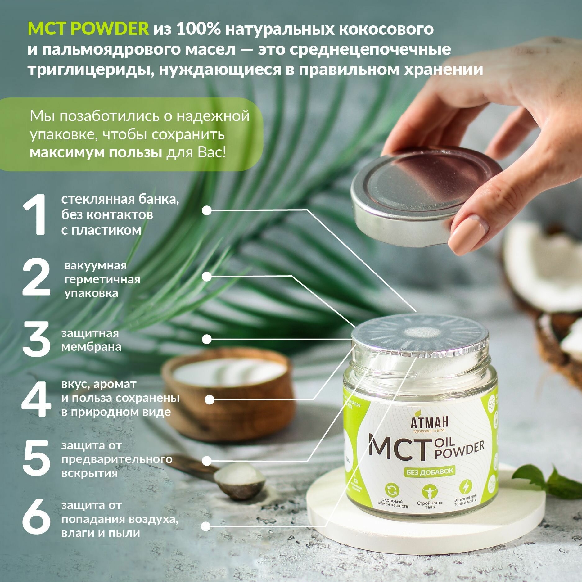 МСТ пудра, МСТ порошок С8, С10, MCT oil, кето продукты, продукты для похудения, правильное питание, 100 гр, АТМАН