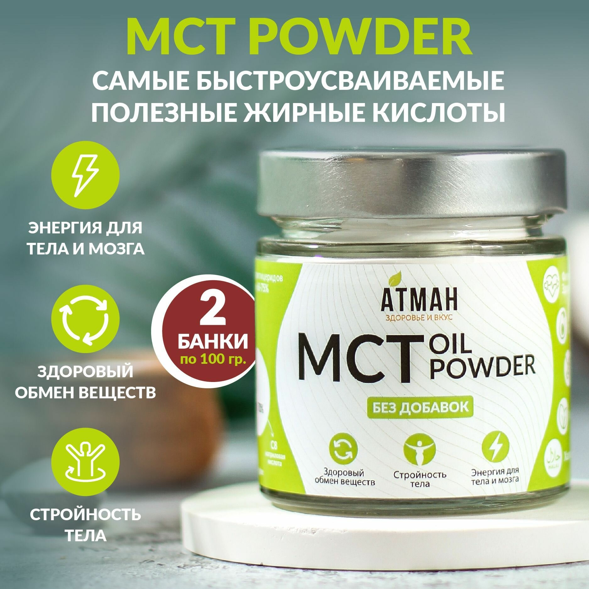 MCT POWDER / мст пудра, мст порошок, среднецепочеченые триглицериды (из масла МСТ, MCT Oil), 2 штуки по 100 гр, АТМАН интересное: