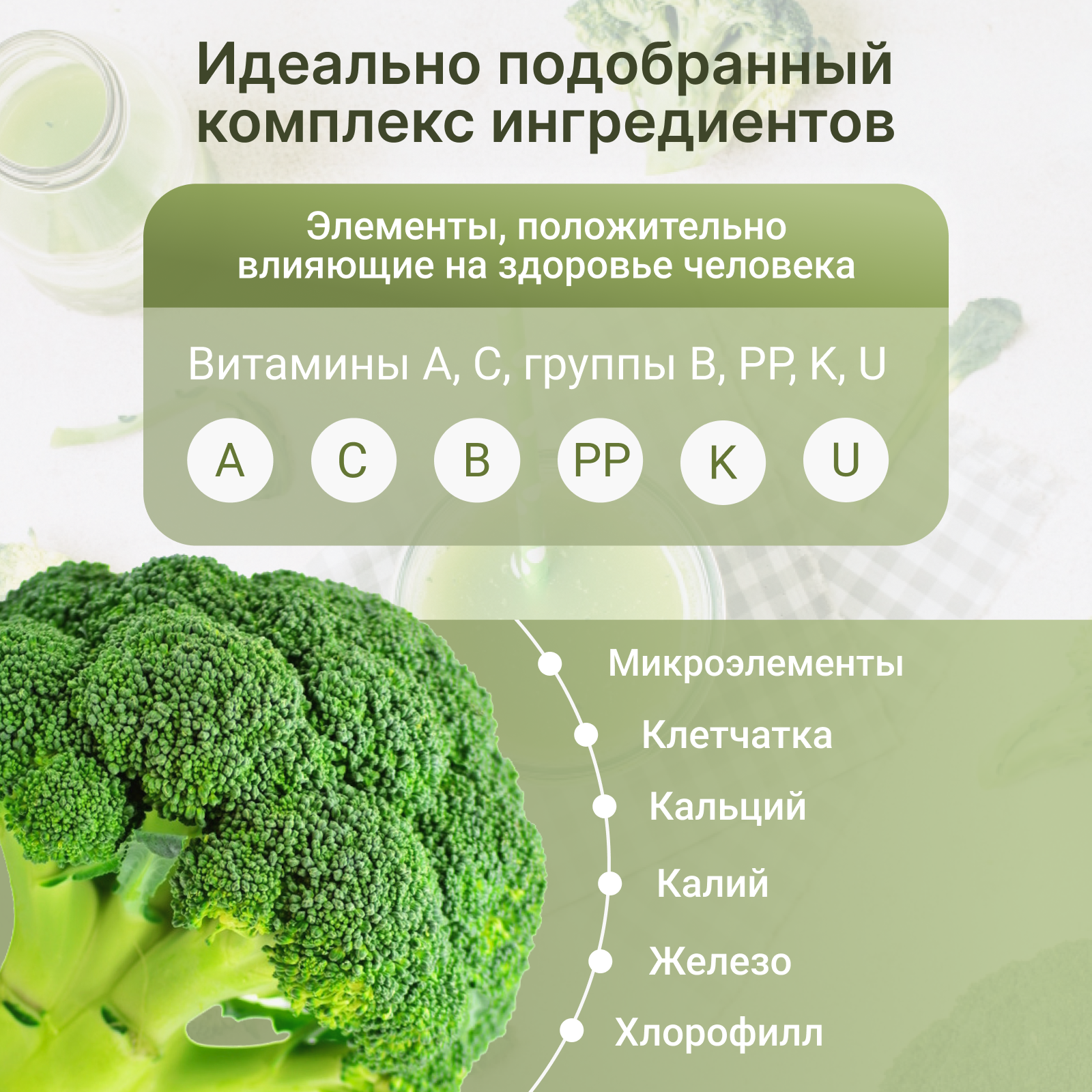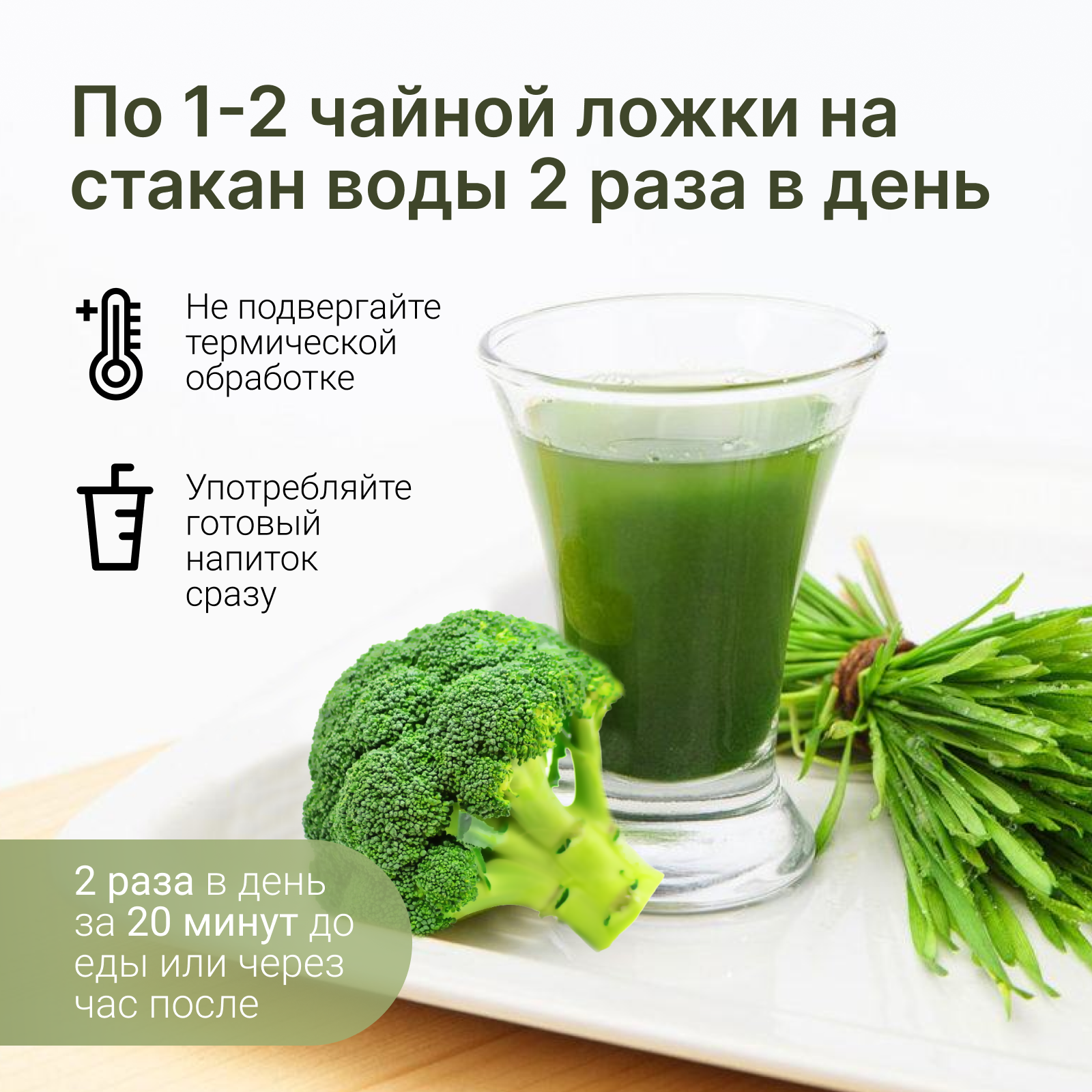 | Состав | 50% порошок из росков пшеницы 50% порошок брокколи |