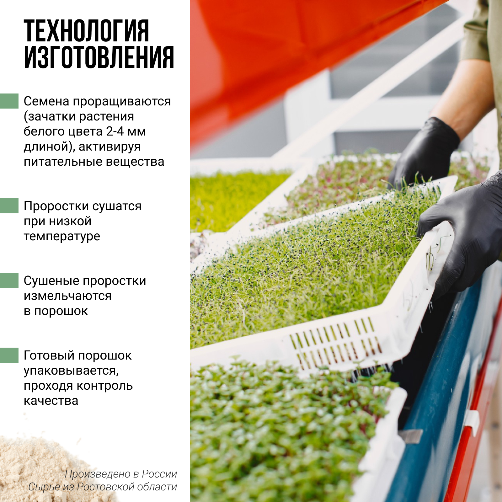 Проростки пшеницы, ржи, спельты, зеленой гречки, полбы, чечевицы, овса в порошке, 200 грамм интересное: