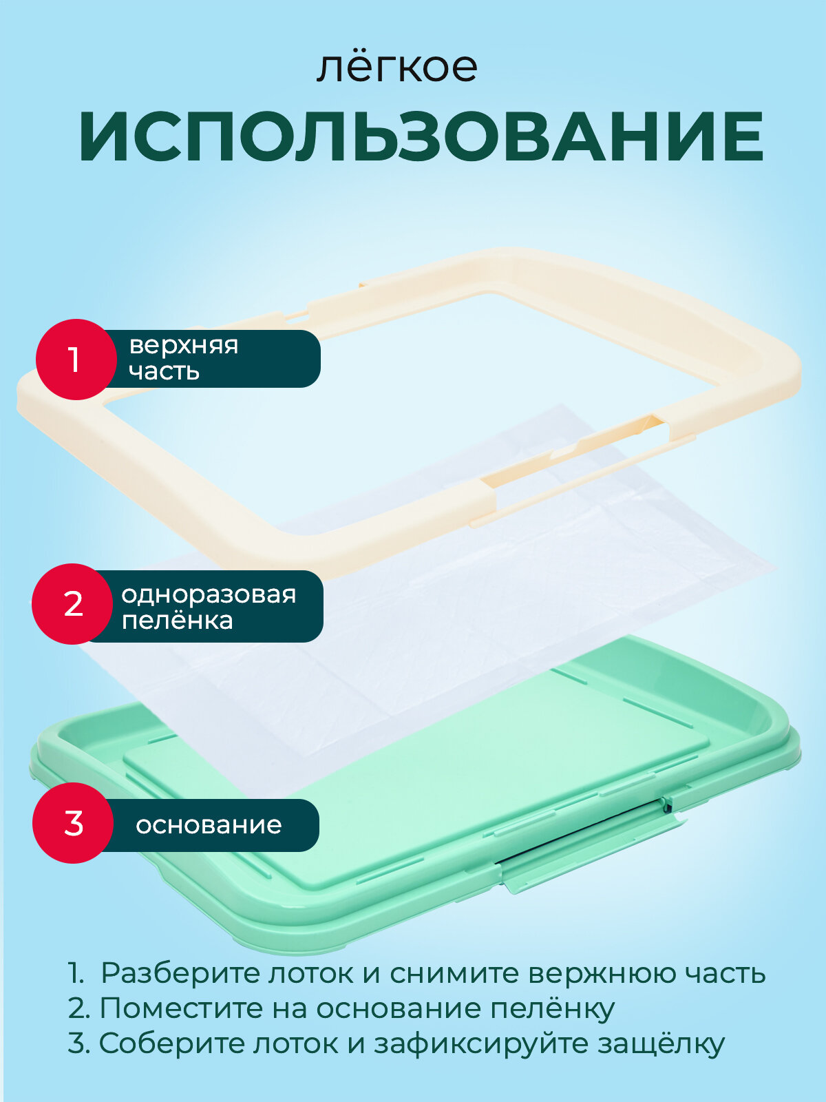| Плюсы: | Лоток просто супер, у меня собака породы мопс, лоток подошёл идеально, бортик высокие, не выливается, можно разобрать его и помыть по отдельности(для санобработки), а так я ложу пеленку. К покупке рекомендую. |