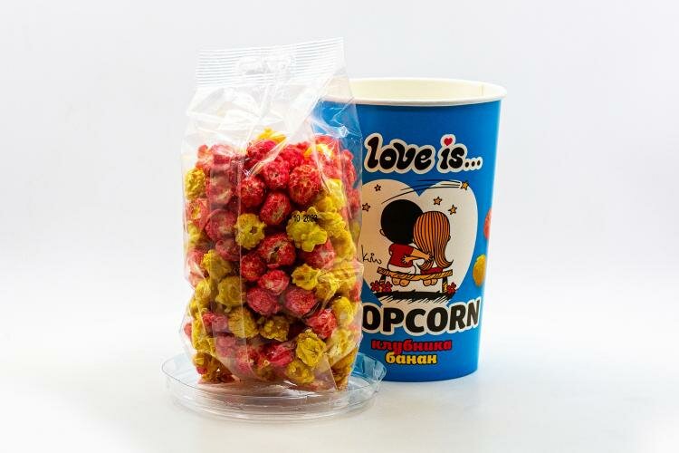 Попкорн карамельный Love is со вкусами клубники и банан 120 гр Упаковка 12 шт интересное:
