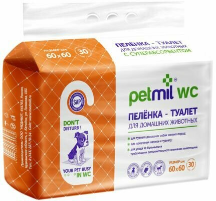 Купить PETMIL Пеленка-подстилка впитывающая одноразовая для животных 60*60, 30 шт