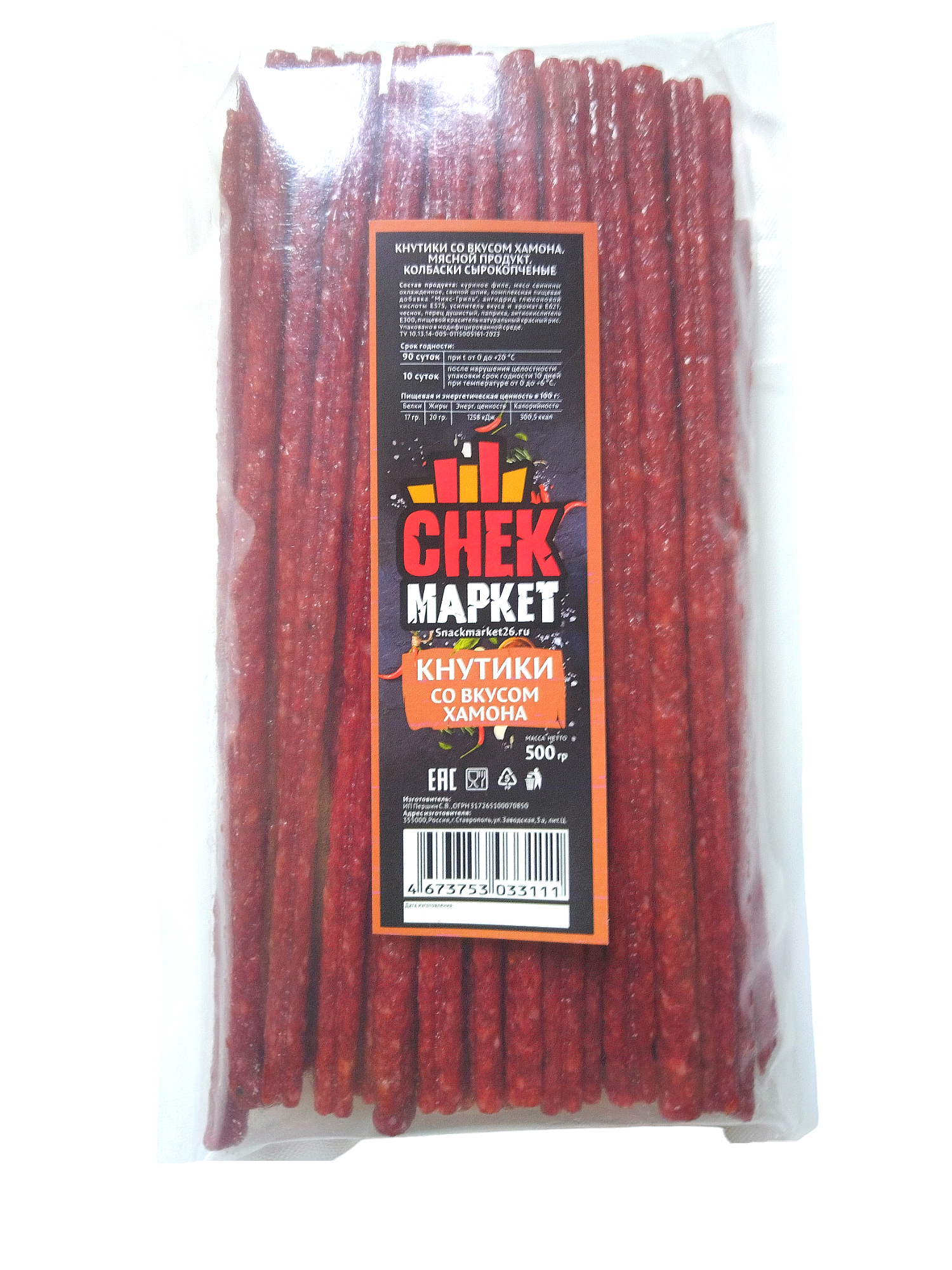 Купить Колбаски сырокопченые."Кнутики со вкусом Хамона"