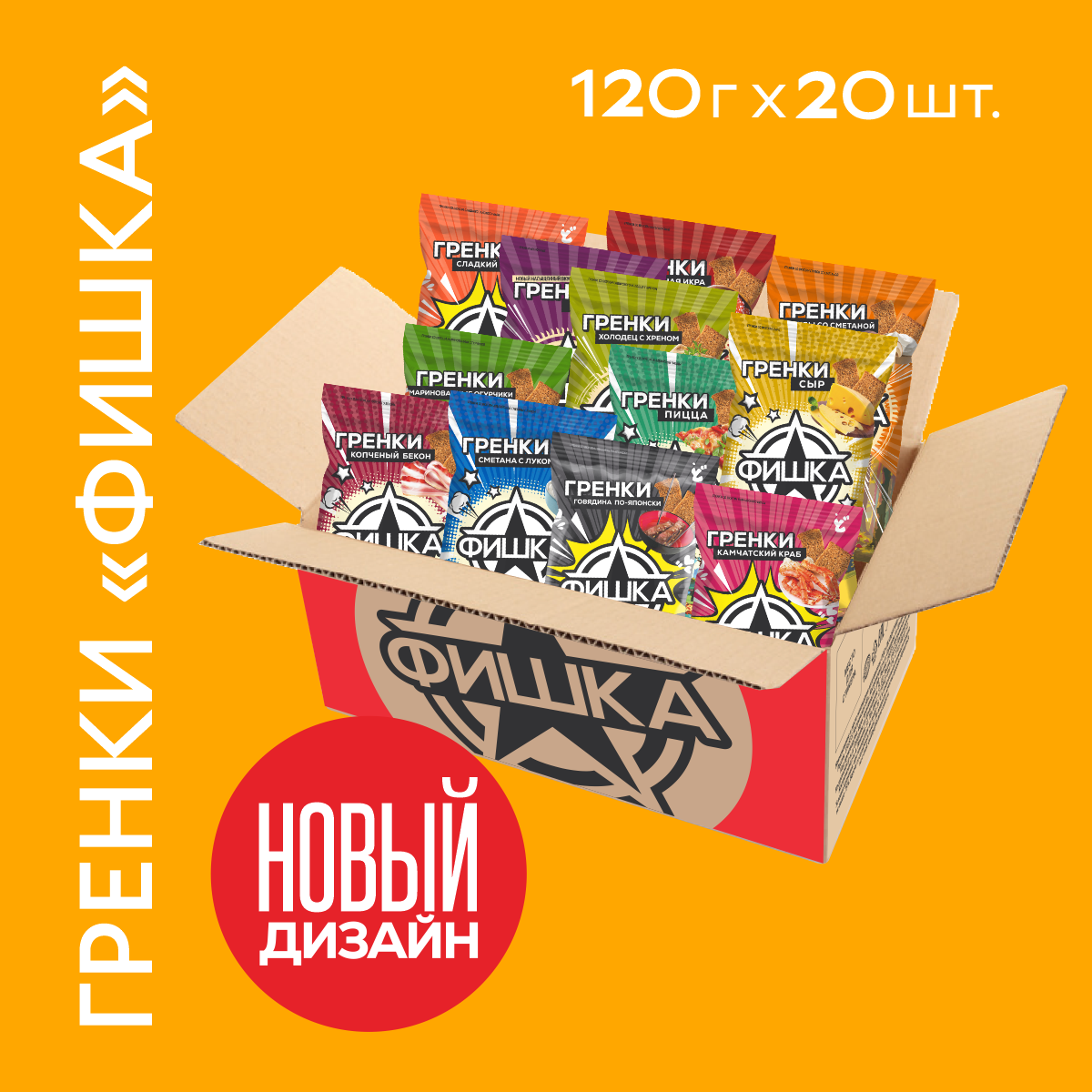 Купить Гренки "Фишка" 120 г ассорти 12 вкусов, 20 шт.