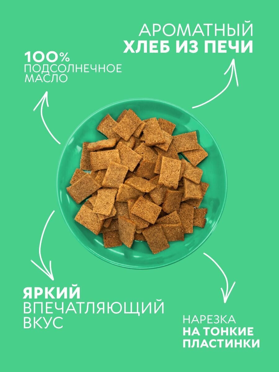 | Состав | Хлеб ржано-пшеничный (мука ржаная хлебопекарная обдирная, мука пшеничная хлебопекарная 2 сорт, вода, соль, дрожжи хлебопекарные), масло подсолнечное рафинированное дезодорированное, комплексная пищевая добавка (мальтодекстрин, соль, ароматизаторы пищевые, усилитель вкуса и аромата (Е621), перец черный (порошок), хрен сушеный (порошок), агент антислеживающий (Е551)), соль пищевая. Продукт может содержать незначительное количество ракообразных, рыбы, горчицы, сои, кунжута, сельдерея и продукты их переработки. Продукт содержит глютен. |