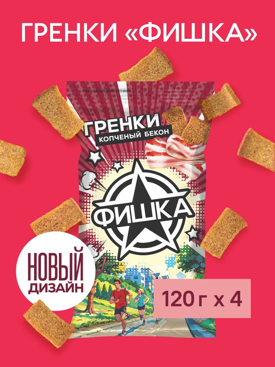 Купить Гренки "Фишка" со вкусом копченого бекона 120г, 4 шт.