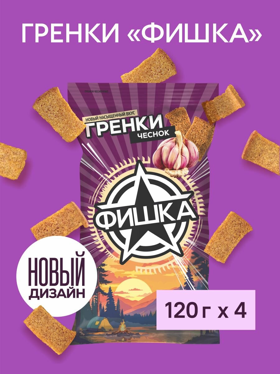 Купить Гренки "Фишка" чесночные 120г, 4 шт.