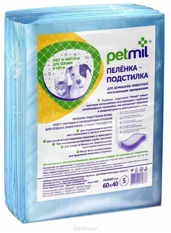 Пеленки для собак впитывающие Мedmil Petmil 60х40х0.5 см 60 см 40 см 0.5 см 5 шт. 1 шт.