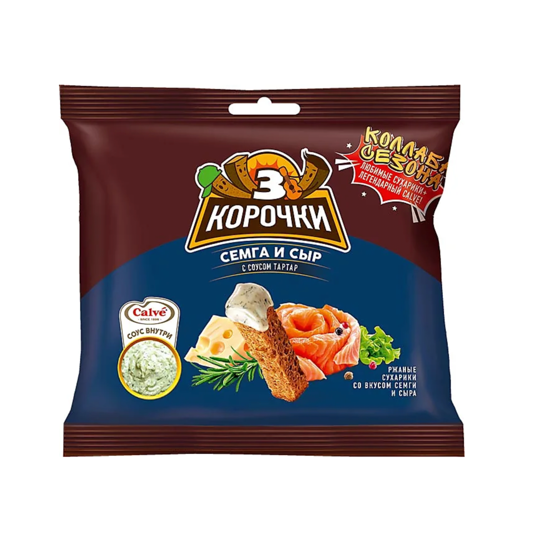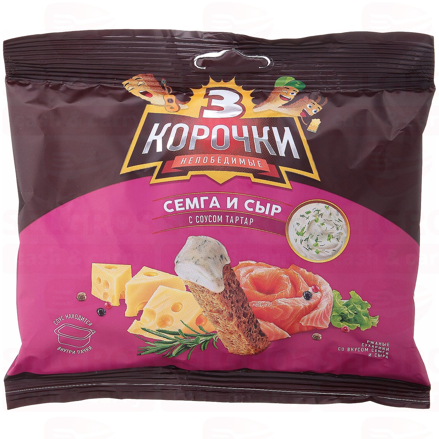 Купить 3 Корочки, сухарики со вкусом сёмги с сыром и соусом тар-тар, 85 г