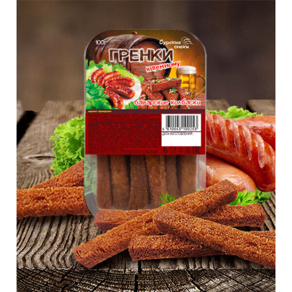 Купить Гренки к пенному Баварские колбаски 2шт по 100г."Сурские снеки"