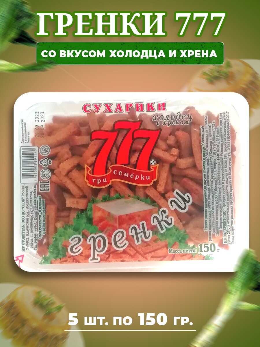 Купить Сухарики гренки 777 со вкусом холодца и хрена (контейнер), 5 шт по 150 гр