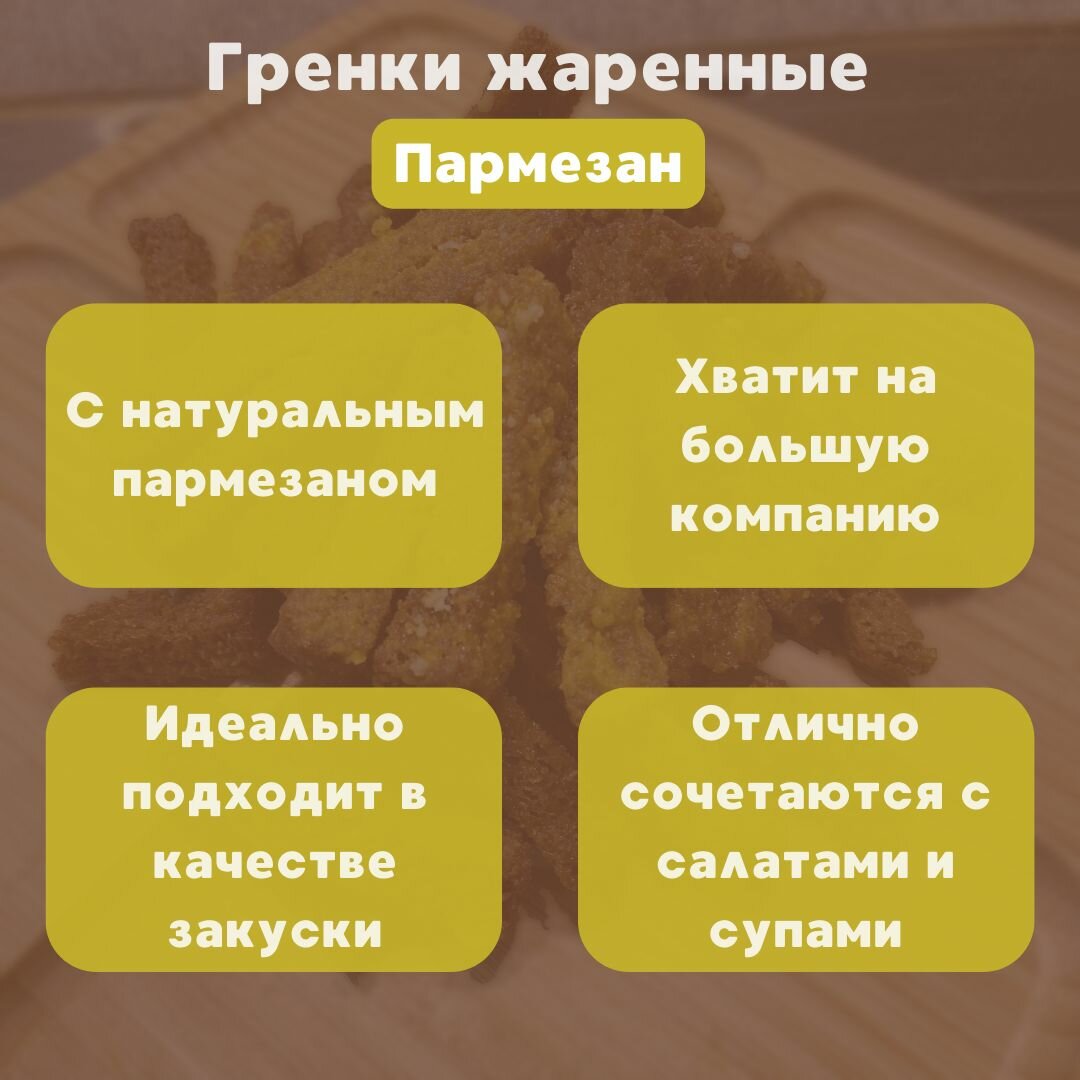 Ниже Вы можете прочитать отзывы на Гренки жареные С сыром пармезан 500г, ознакомится с подробными характеристиками, посмотреть интересные обзоры и фотографии на Гренки жареные С сыром пармезан 500г.