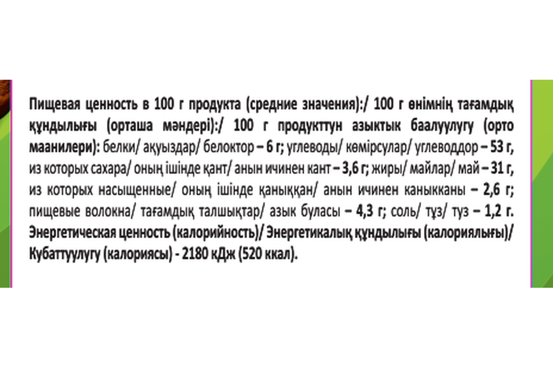 | Вкус | лук |